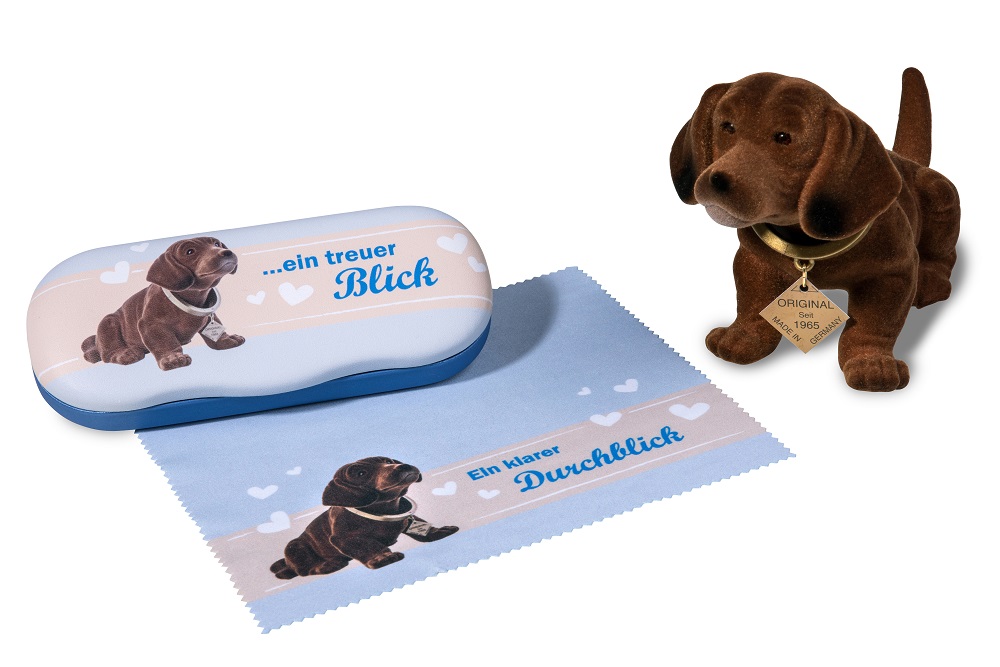 Unser Wackeldackel begleitet Sie mit seinem süßen Lächeln und Ihre Brille ist bestens geschützt.